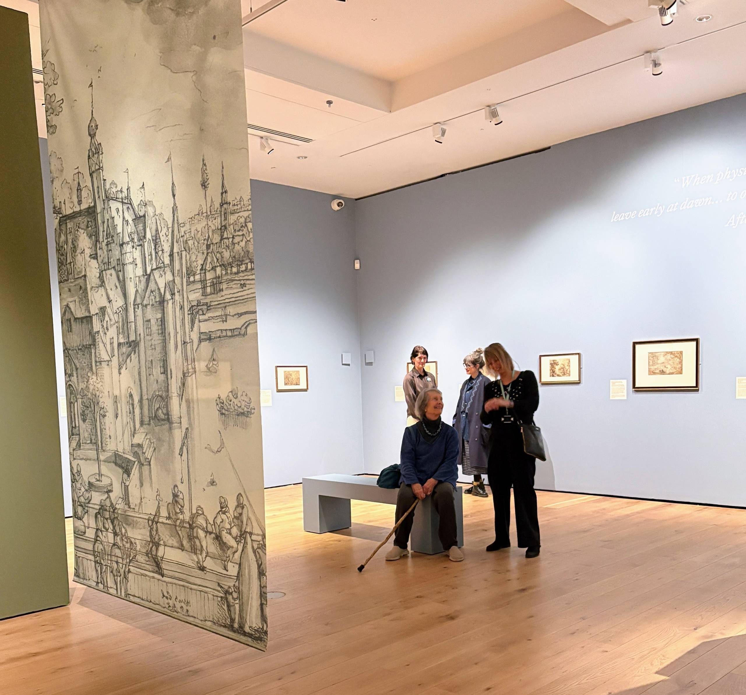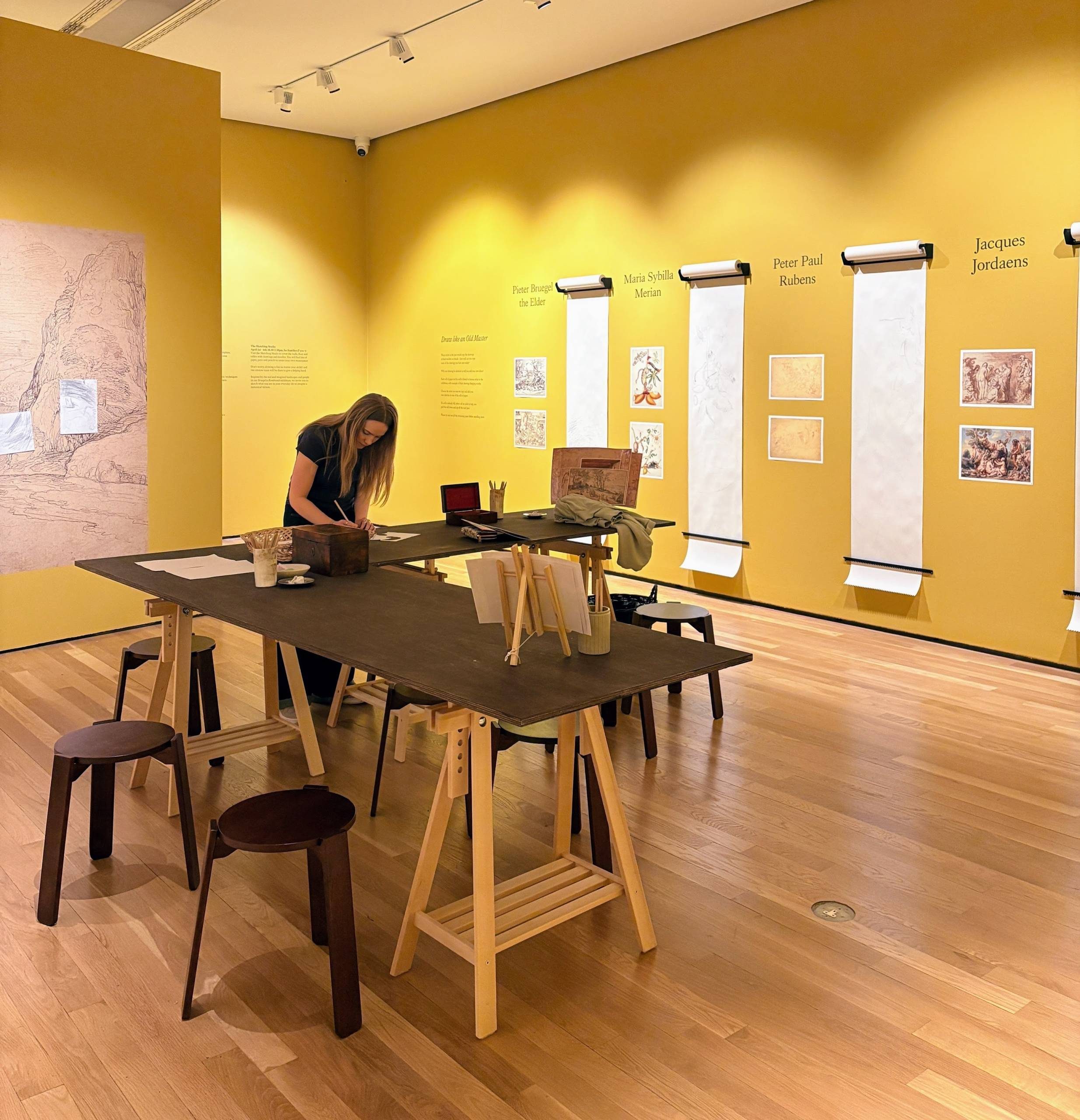 - The exhibition features an interactive communal drawing space where anyone is welcome to sketch their own characters or features to add to a large landscape on the wall. You can also try your hand at copying the style of some of the Old Masters on long paper rolls hanging from the wall.